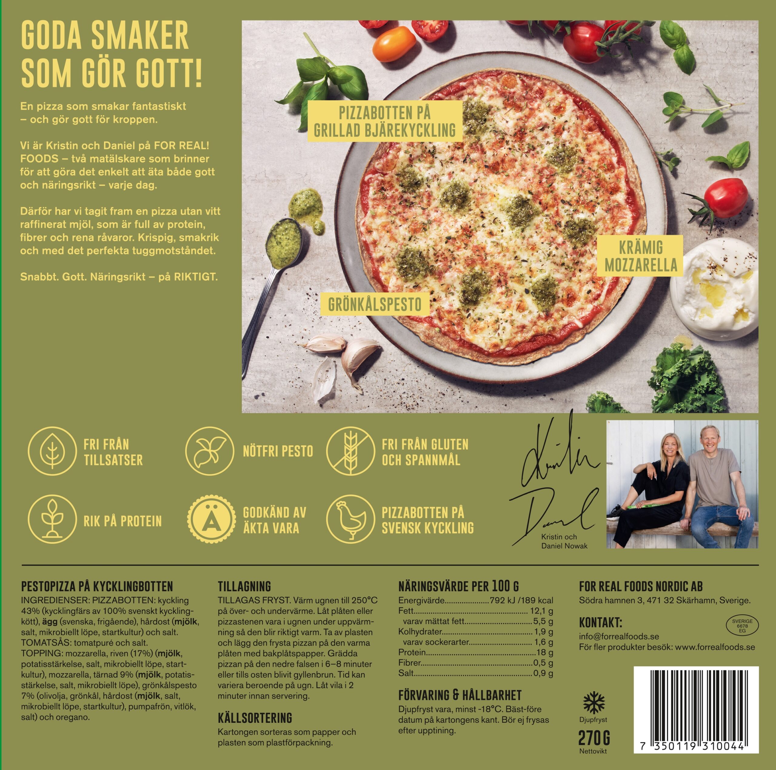 Leivättömän pizzan pohja ruotsalaisen Bjärefågelin Torekovin laatukanaa täysin ilman viljaa ja 100 % luonnollisista ainesosista. Nauti maukkaasta tuotteesta, joka jättää mukavan ja raikkaan kylläisyyden tunteen. Täydellinen niille, jotka pitävät Low Carbista, ketoosista, gluteenittomuudesta tai niille, jotka haluavat vain syödä ravitsevaa ja aitoa ruokaa ilman lisäaineita. Tuotettu Skärhamnissa Tjörnillä.
