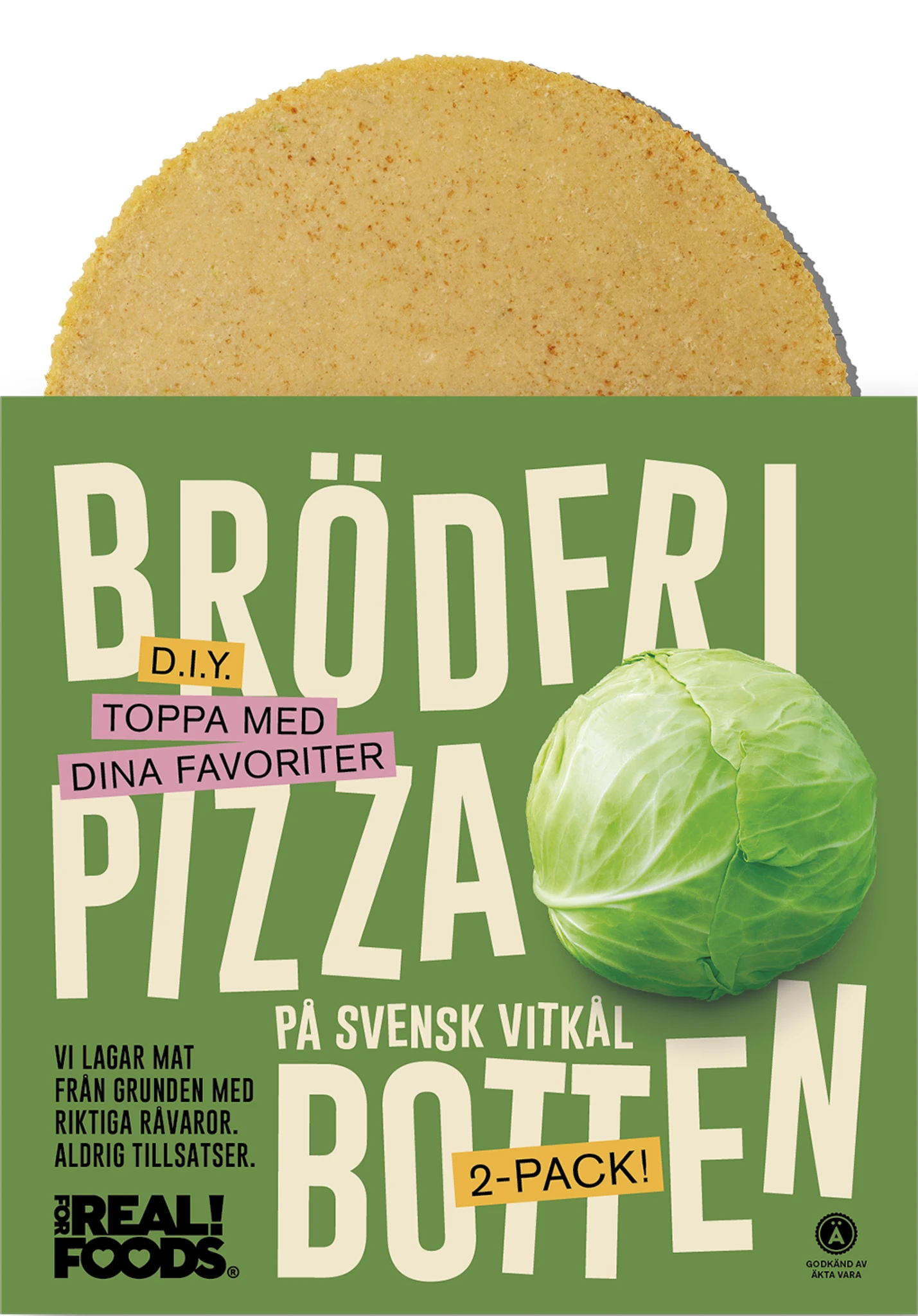 Brödfri växtbaserad pizzabotten som bakas på svensk lokalodlad vitkål helt utan spannmål och med 100% naturliga råvaror. Njut av en pizza som lämnar dig med en skön och fräsch mättnadskänsla. Perfekt för dig som gillar Low Carb, Keto, Glutenfritt eller för dig som bara vill äta näringsrik och riktig mat utan tillsatser. Producerad i Skärhamn på Tjörn.